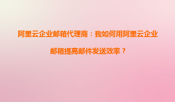 阿里云企業(yè)郵箱代理商:如何用阿里云企業(yè)郵箱提高郵件發(fā)送效率