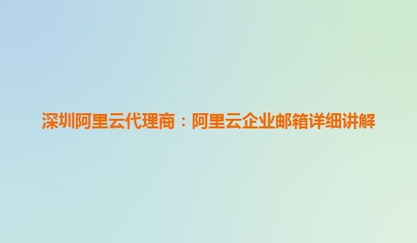 深圳阿里云代理商:阿里云企業(yè)郵箱詳細(xì)講解
