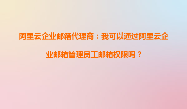 阿里云企業(yè)郵箱代理商:我可以通過阿里云企業(yè)郵箱管理員工郵箱權(quán)限嗎?