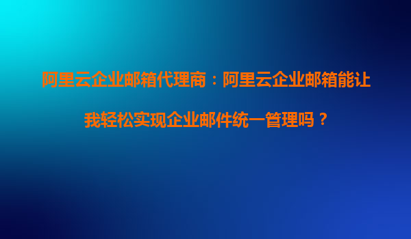 阿里云企業(yè)郵箱:助力企業(yè)高效實(shí)現(xiàn)郵件統(tǒng)一管理