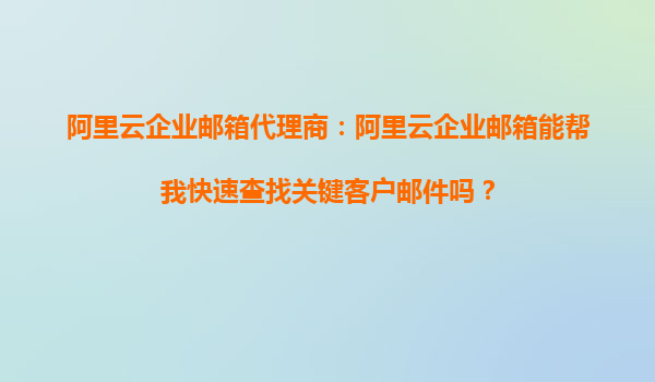 在當前快節(jié)奏的商業(yè)環(huán)境中,快速查找關鍵客戶郵件是企業(yè)高效運營的重要需求之一。阿里云企業(yè)郵箱憑借其強大的功能和穩(wěn)定的性能,成為了眾多企業(yè)的首選。它不僅提供了便捷的郵件收發(fā)功能,還能幫助企業(yè)輕松管理海量郵件,快速定位關鍵信息。