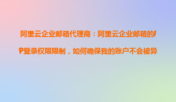 阿里云企業(yè)郵箱代理商:阿里云企業(yè)郵箱的IP登錄權(quán)限限制,如何確保我的賬戶不會被異地盜用?
