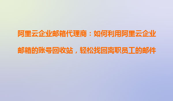 阿里云企業(yè)郵箱代理商:如何利用阿里云企業(yè)郵箱的賬號回收站,輕松找回離職員工的郵件?