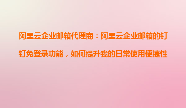 阿里云企業(yè)郵箱的釘釘免登錄功能:如何提升日常使用便捷性?