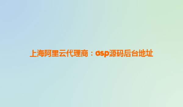 上海阿里云代理商:ASP源碼后臺(tái)地址的優(yōu)選合作伙伴