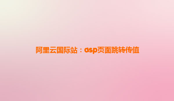 阿里云國際站:ASP頁面跳轉(zhuǎn)傳值技術(shù)解析與優(yōu)勢