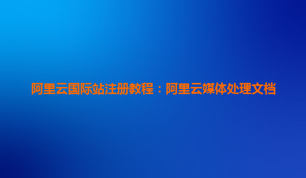阿里云國際站注冊與媒體處理服務的全面指南