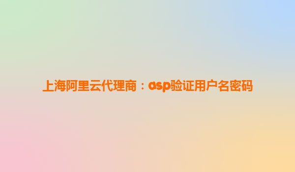 上海阿里云代理商:ASP驗證用戶名密碼方案解析