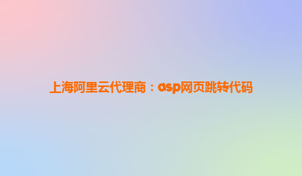 上海阿里云代理商:ASP網(wǎng)頁(yè)跳轉(zhuǎn)代碼實(shí)踐與阿里云優(yōu)勢(shì)解析