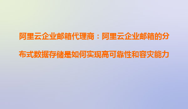 阿里云企業(yè)郵箱的分布式數(shù)據(jù)存儲如何實(shí)現(xiàn)高可靠性與容災(zāi)能力