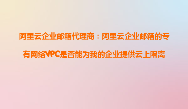 阿里云企業(yè)郵箱代理商:阿里云企業(yè)郵箱專有網(wǎng)絡(luò)VPC如何為企業(yè)提供云上隔離環(huán)境