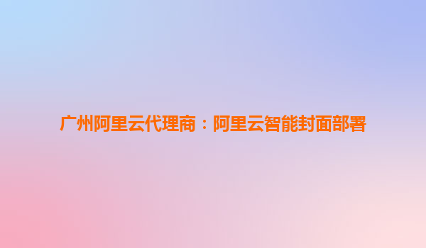 廣州阿里云代理商:阿里云智能封面部署