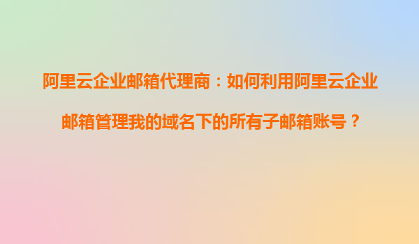 阿里云企業(yè)郵箱代理商:如何利用阿里云企業(yè)郵箱管理我的域名下的所有子郵箱賬號?