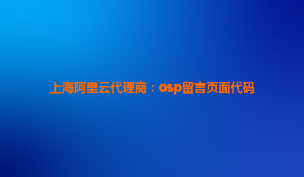 上海阿里云代理商實戰(zhàn):ASP留言頁面代碼開發(fā)與阿里云優(yōu)勢解析