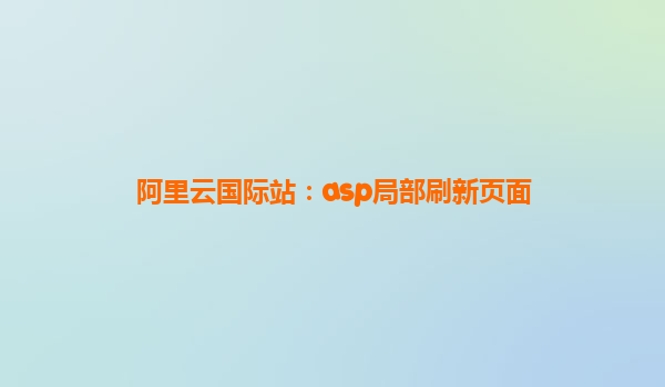 阿里云國際站:ASP局部頁面刷新技術(shù)與生態(tài)優(yōu)勢解析