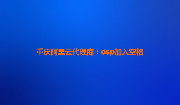 標題“重慶阿里云代理商:ASP加入空格”包含三個核心信息點:地域(重慶)、服務主體(阿里云代理商)及技術(shù)需求(ASP加入空格)。這表明用戶可能希望通過重慶地區(qū)的阿里云代理商,實現(xiàn)ASP(動態(tài)服務器頁面)開發(fā)中的空格處理需求,或優(yōu)化相關(guān)云服務配置。