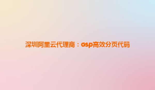 深圳阿里云代理商:ASP高效分頁代碼實(shí)現(xiàn)與阿里云優(yōu)勢(shì)解析