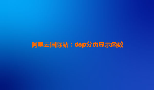 基于阿里云國(guó)際站平臺(tái)的ASP分頁(yè)顯示函數(shù)開(kāi)發(fā)指南