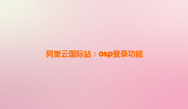 阿里云國際站:ASP登錄功能的優(yōu)勢與實(shí)踐