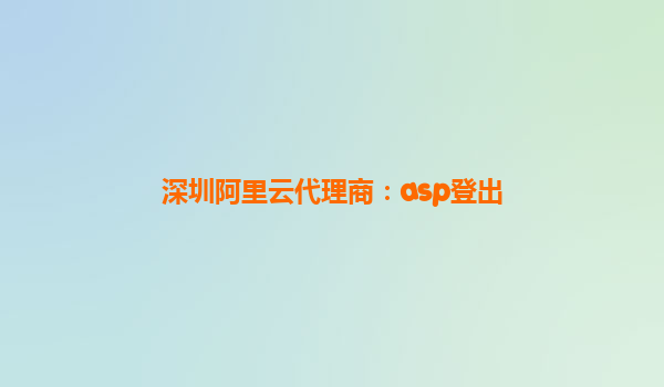 深圳阿里云代理商:ASP登出與阿里云的卓越優(yōu)勢(shì)