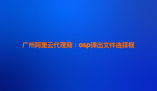 廣州阿里云代理商:ASP實現(xiàn)文件選擇框功能與阿里云的優(yōu)勢解析