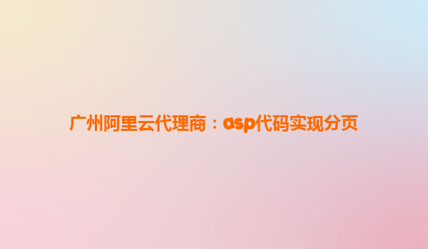 標(biāo)題"廣州阿里云代理商:asp代碼實(shí)現(xiàn)分頁"明確指出了三個(gè)關(guān)鍵信息點(diǎn):
