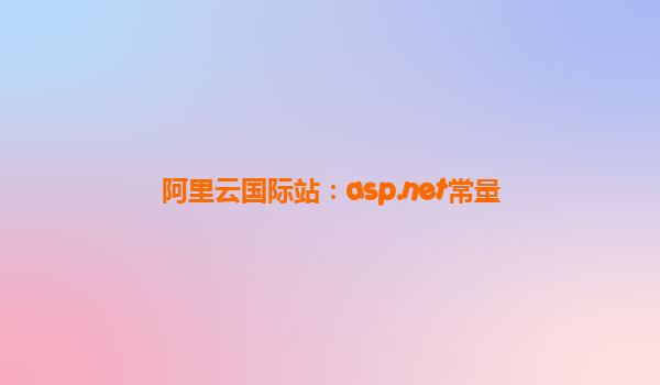 阿里云國際站:ASP.NET常量部署與優(yōu)化解決方案