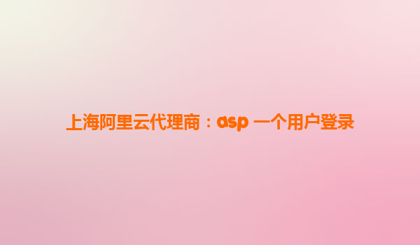 上海阿里云代理商:ASP用戶登錄系統(tǒng)的云端解決方案