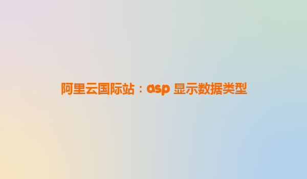 阿里云國際站:ASP顯示數(shù)據(jù)類型的優(yōu)勢與應(yīng)用場景分析