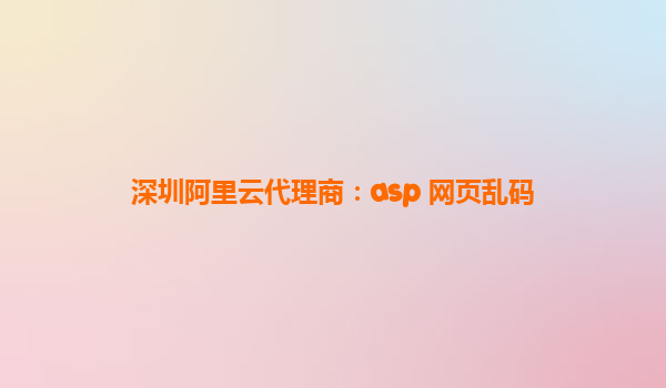 深圳阿里云代理商:解決ASP網(wǎng)頁亂碼問題的專業(yè)方案