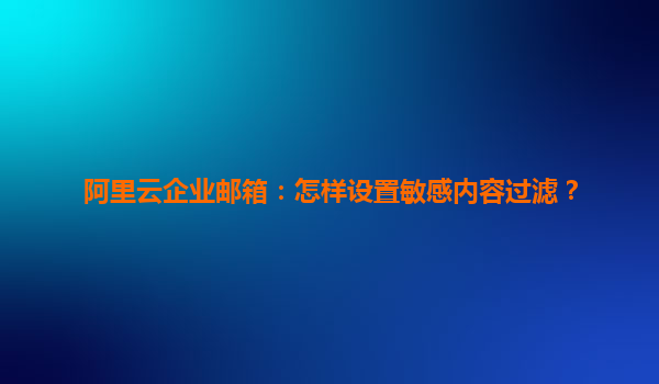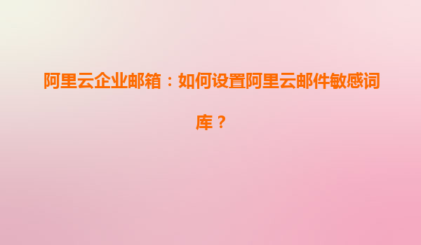 阿里云企業(yè)郵箱:如何設(shè)置敏感詞過濾功能詳解 在當(dāng)前企業(yè)信息化管理中,阿里云企業(yè)郵箱作為一款高效安全的通信工具,其內(nèi)置的敏感詞過濾功能能有效降低企業(yè)內(nèi)部信息外泄風(fēng)險(xiǎn)。本文將分步驟講解如何配置這一