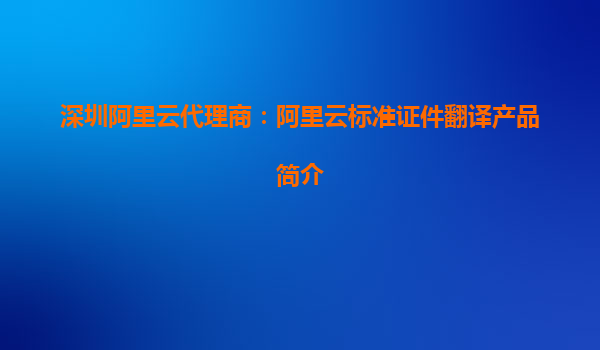 深圳阿里云代理商:阿里云標(biāo)準(zhǔn)證件翻譯產(chǎn)品簡(jiǎn)介 在全球化迅速發(fā)展的今天,企業(yè)和個(gè)人越來(lái)越依賴(lài)于多語(yǔ)言支持和翻譯服務(wù)。尤其是在跨境電商、國(guó)際貿(mào)易、外籍人員管理等領(lǐng)域,準(zhǔn)確且高效的證件翻譯服務(wù)顯得尤為重要。