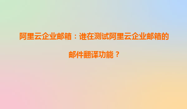 阿里云企業(yè)郵箱:誰(shuí)在測(cè)試郵件翻譯功能? 隨著全球化進(jìn)程的不斷深化,企業(yè)間的跨國(guó)交流日益頻繁,郵件作為商務(wù)溝通的重要工具,其功能和效率直接影響到企業(yè)的運(yùn)營(yíng)效率。阿里云企業(yè)郵箱作為國(guó)內(nèi)領(lǐng)先的企業(yè)郵箱服務(wù)