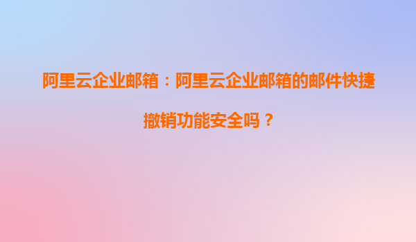 阿里云企業(yè)郵箱:阿里云企業(yè)郵箱的郵件快捷撤銷功能安全嗎? 隨著信息化時(shí)代的快速發(fā)展,電子郵件已成為企業(yè)日常溝通和管理的重要工具。企業(yè)郵箱作為企業(yè)辦公的基礎(chǔ)設(shè)施,其安全性和穩(wěn)定性尤為重要。阿里