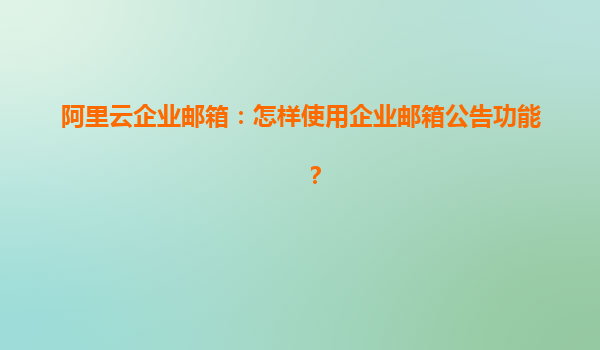 如何有效利用阿里云企業(yè)郵箱的公告功能 在現(xiàn)代企業(yè)管理中,信息的及時傳達(dá)是保證團(tuán)隊效率的關(guān)鍵。阿里云企業(yè)郵箱作為市場上領(lǐng)先的企業(yè)郵箱解決方案,提供了多種功能以滿足企業(yè)的不同需求,其中公告功能是其一大