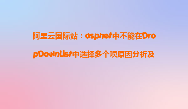 阿里云國際站:ASP.NET中不能在DropDownList中選擇多個項原因分析及解決方法 在使用ASP.NET開發(fā)應(yīng)用程序時,DropDownList是一個非常常見的控件,它可以提供下拉選擇框的功能,讓用戶從多個選項中選擇其中一