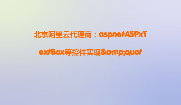 北京阿里云代理商:ASP.NETASPxTextBox控件實現(xiàn)"回車模擬Tab"的常用代碼整理 在Web開發(fā)過程中,表單的交互設計至關重要,尤其是在用戶輸入時,如何優(yōu)化輸入流暢性和便捷性。很多開發(fā)者在實現(xiàn)表單時,