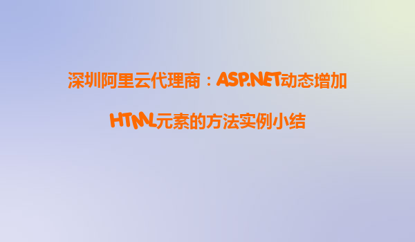 深圳阿里云代理商:ASP.NET動態(tài)增加HTML元素的方法實例小結(jié) 隨著現(xiàn)代網(wǎng)頁開發(fā)的快速發(fā)展,前端與后端的結(jié)合越來越密切。在ASP.NET中,我們常常需要通過動態(tài)方式增加HTML元素來實現(xiàn)交互性和用戶體驗的提升。本文將介