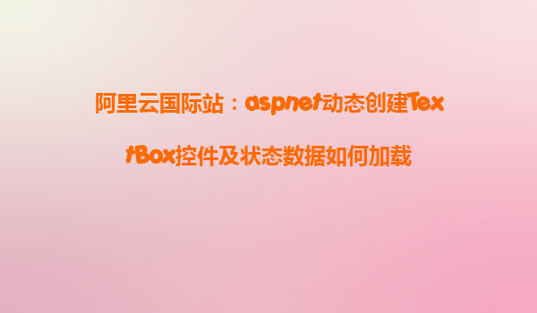 阿里云國際站:ASP.NET動(dòng)態(tài)創(chuàng)建TextBox控件及狀態(tài)數(shù)據(jù)如何加載 阿里云作為全球領(lǐng)先的云計(jì)算服務(wù)提供商,為用戶提供高效、安全的云服務(wù)解決方案。阿里云國際站特別適合全球用戶,不僅覆蓋全球多個(gè)區(qū)域,還擁有