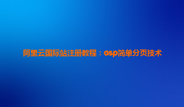阿里云國(guó)際站注冊(cè)教程:ASP簡(jiǎn)單分頁(yè)技術(shù) 一、阿里云國(guó)際站的優(yōu)勢(shì) 阿里云國(guó)際站作為全球領(lǐng)先的云計(jì)算服務(wù)提供商,為廣大開(kāi)發(fā)者提供了穩(wěn)定、安全、高效的云服務(wù)。對(duì)于需要部署ASP網(wǎng)站的用戶來(lái)說(shuō),阿里云國(guó)際站