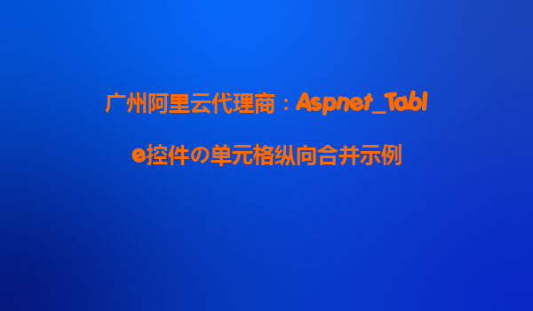 廣州阿里云代理商:Aspnet_Table控件の單元格縱向合并示例 隨著互聯(lián)網(wǎng)技術(shù)的不斷發(fā)展,云計(jì)算已成為各類企業(yè)不可或缺的核心技術(shù)之一。阿里云作為全球領(lǐng)先的云計(jì)算平臺(tái),憑借強(qiáng)大的技術(shù)優(yōu)勢(shì)和豐富的服務(wù)產(chǎn)品,正在為