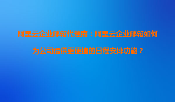 阿里云企業(yè)郵箱代理商:阿里云企業(yè)郵箱如何為公司提供更便捷的日程安排功能? 一、阿里云企業(yè)郵箱的日程管理優(yōu)勢 在當(dāng)今快節(jié)奏的商業(yè)環(huán)境中,高效的日程管理已成為企業(yè)提升生產(chǎn)力的關(guān)鍵。阿