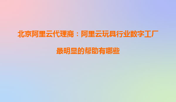北京阿里云代理商:阿里云玩具行業(yè)數(shù)字工廠最明顯的幫助有哪些 一、引言:玩具行業(yè)數(shù)字化轉(zhuǎn)型的必然趨勢 隨著全球制造業(yè)向智能化、數(shù)字化方向快速發(fā)展,玩具行業(yè)作為傳統(tǒng)制造業(yè)的重要組成部分,也面臨著生