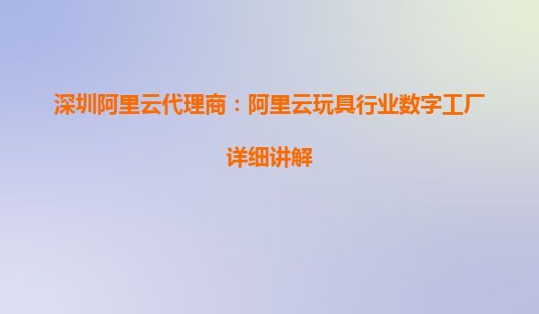 深圳阿里云代理商:阿里云玩具行業(yè)數(shù)字工廠詳細(xì)講解 引言 隨著數(shù)字化轉(zhuǎn)型浪潮的推進(jìn),越來越多的傳統(tǒng)行業(yè)開始借助云計(jì)算、大數(shù)據(jù)、人工智能等技術(shù)實(shí)現(xiàn)智能化升級(jí)。玩具行業(yè)作為傳統(tǒng)制造業(yè)的重要組成部分,
