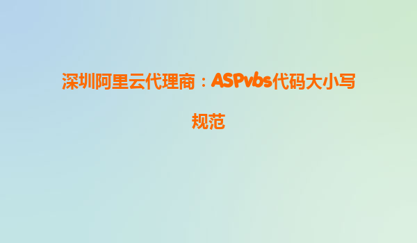 深圳阿里云代理商:ASP/VBS代碼大小寫規(guī)范 在軟件開發(fā)過程中,代碼的規(guī)范性直接影響到系統(tǒng)的穩(wěn)定性和可維護(hù)性。尤其是在企業(yè)級(jí)應(yīng)用中,遵循良好的編程規(guī)范至關(guān)重要。ASP和VBScript作為經(jīng)典的腳本語言,常用于動(dòng)