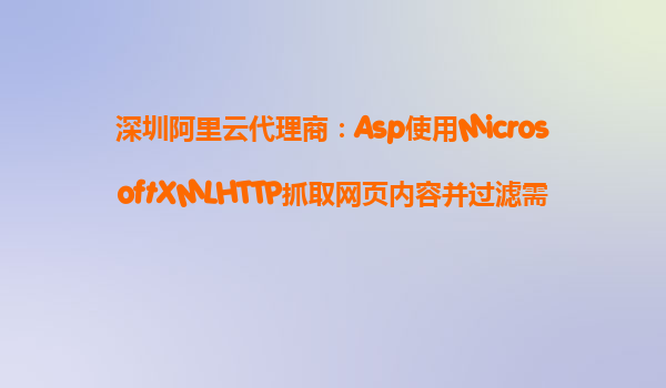 深圳阿里云代理商:Asp使用MicrosoftXMLHTTP抓取網頁內容并過濾需要的 在當今的互聯(lián)網時代,抓取網頁內容并進行數(shù)據分析已成為許多企業(yè)和開發(fā)者常用的技術手段。使用網頁抓取工具可以幫助我們獲取大量的實時
