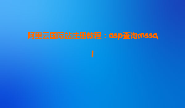 阿里云國際站注冊教程:ASP查詢MSSQL數(shù)據(jù)庫實踐指南 一、前言:為什么選擇阿里云國際站? 阿里云國際站作為全球領先的云計算服務提供商,為開發(fā)者提供了穩(wěn)定、安全、高性能的云數(shù)據(jù)庫服務。對于需要