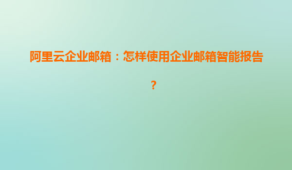 阿里云企業(yè)郵箱的智能報告使用指南 在現(xiàn)代企業(yè)管理中,電子郵件已成為不可或缺的通信工具。阿里云企業(yè)郵箱以其穩(wěn)定性和高效性,成為眾多企業(yè)的首選。本文將詳細介紹如何使用阿里云企業(yè)郵箱的智能報告功能,并探
