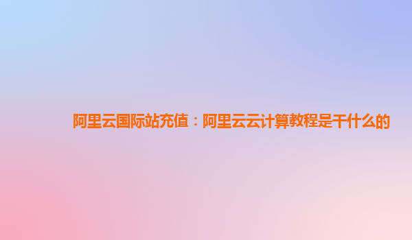 阿里云國際站充值:阿里云云計算教程及其優(yōu)勢 隨著云計算技術的不斷發(fā)展,阿里云已經成為全球領先的云服務提供商之一,尤其在全球市場中,阿里云國際站(國際版)逐漸受到了用戶的關注。對于用戶來說,如何進行