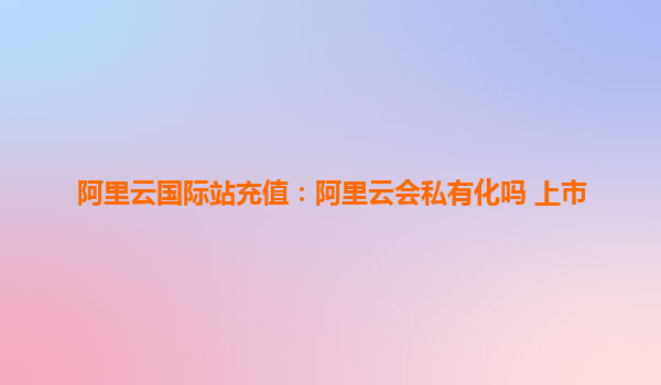 阿里云國際站充值:阿里云會(huì)私有化嗎? 隨著科技的飛速發(fā)展,云計(jì)算已經(jīng)成為現(xiàn)代企業(yè)的核心基礎(chǔ)設(shè)施。阿里云作為中國最大的云計(jì)算服務(wù)平臺(tái)之一,近年來在全球市場(chǎng)上取得了巨大的成功。本文將探討阿里云國際站的充值